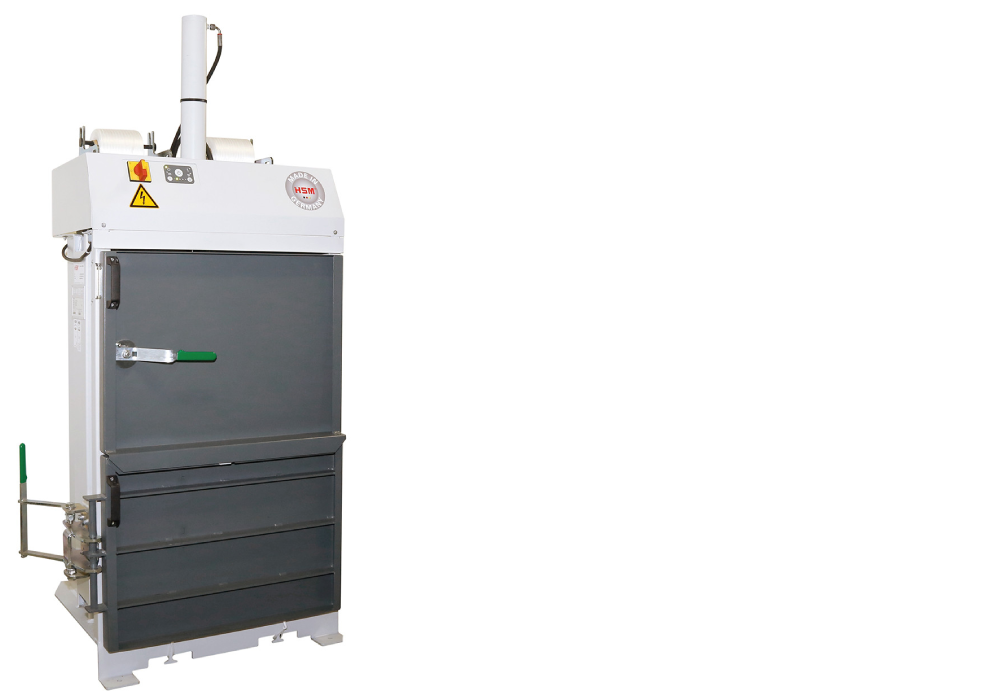 The HSM V-Press 503 eco is a good entry-level baler for small sites producing limited volumes of waste. It’s compact, easy to use, and affordable.