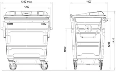 Available in various capacities, the pressed drawn steel construction of these containers gives strength with long service life allied to lightness to ensure easy manouevring of the container by the emptying crews. Various lid options make loading the container easy and safe and the front operated parking breaks ensure the container stays fixed at its working station. These waste containers are for use with comb lift vehicles, and have a fire proof body.