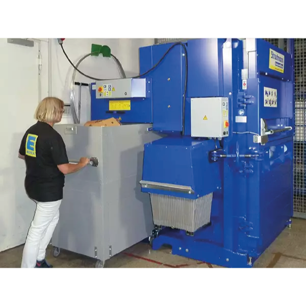 The AutoLoadBaler is used with its own โspecial designโ carts which are positioned wherever cardboard is generated in your business. There is no need to flatten cardboard boxes before placing them in the carts. When full, simply push the cart into the balerโs loading position, press start, take an empty cart and go back to work, leaving the machine to automatically empty the cart for you.