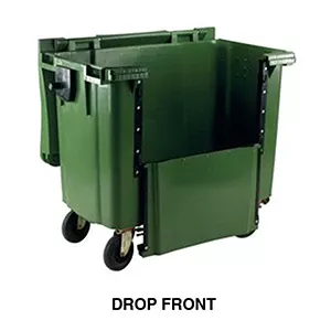 These 1100L waste bins come in a range of different designs, from slot in lids to drop fronts.